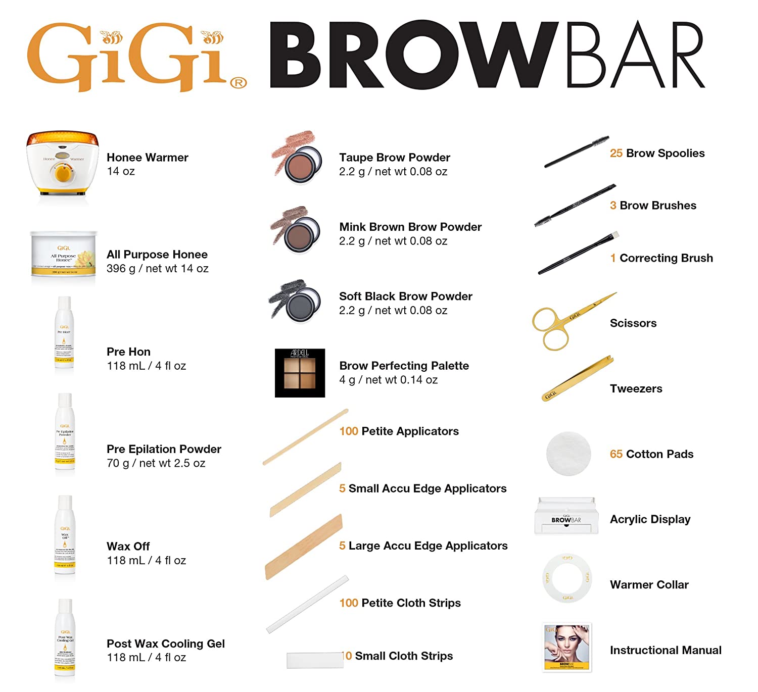- GiGi Brow Bar includes everything a Brow Professional needs