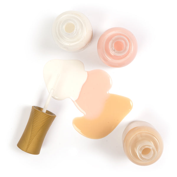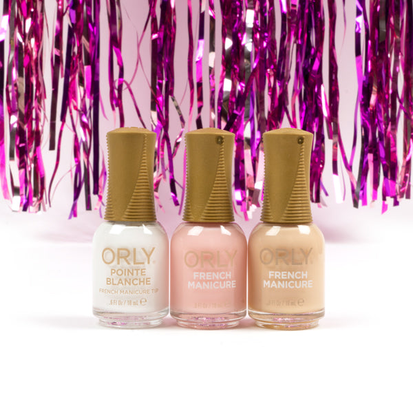 Looking for the French Manicure basics? C'est moi. This bundle contains Pointe Blanche, a bright white créme with a built in striper brush for precision application, Rose-Colored Glasses, a sheer rose tint, and Sheer Nude, a sheer nude tint, all in our traditional lacquer formula.
