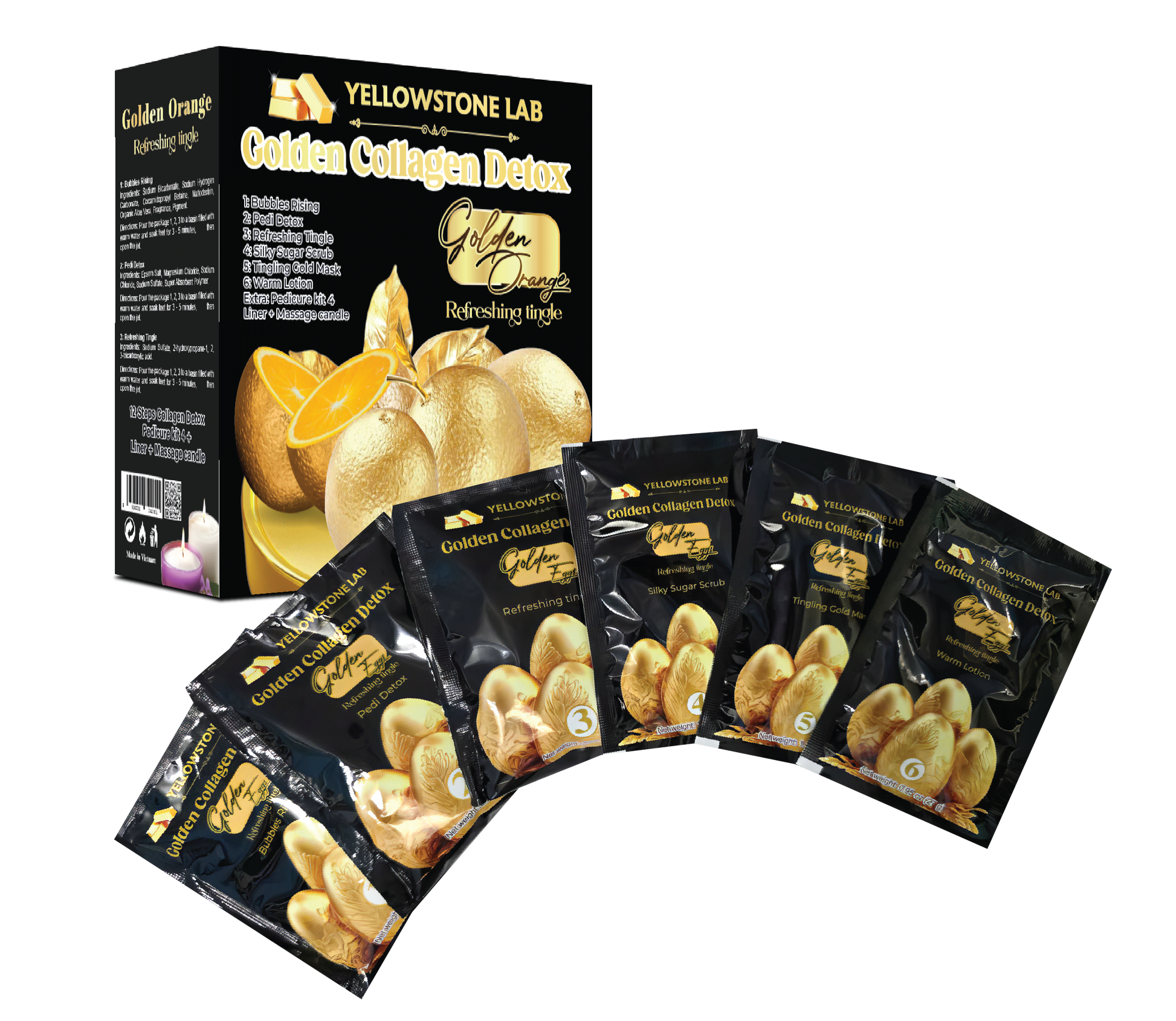 Experience the ultimate pedicure upgrade with Yellowstone Lab’s Golden Collagen Detox — a luxurious 8-step system infused with sparkling bubbles, golden botanical extracts, and premium skincare ingredients designed to detoxify, soothe, and rejuvenate tired feet.